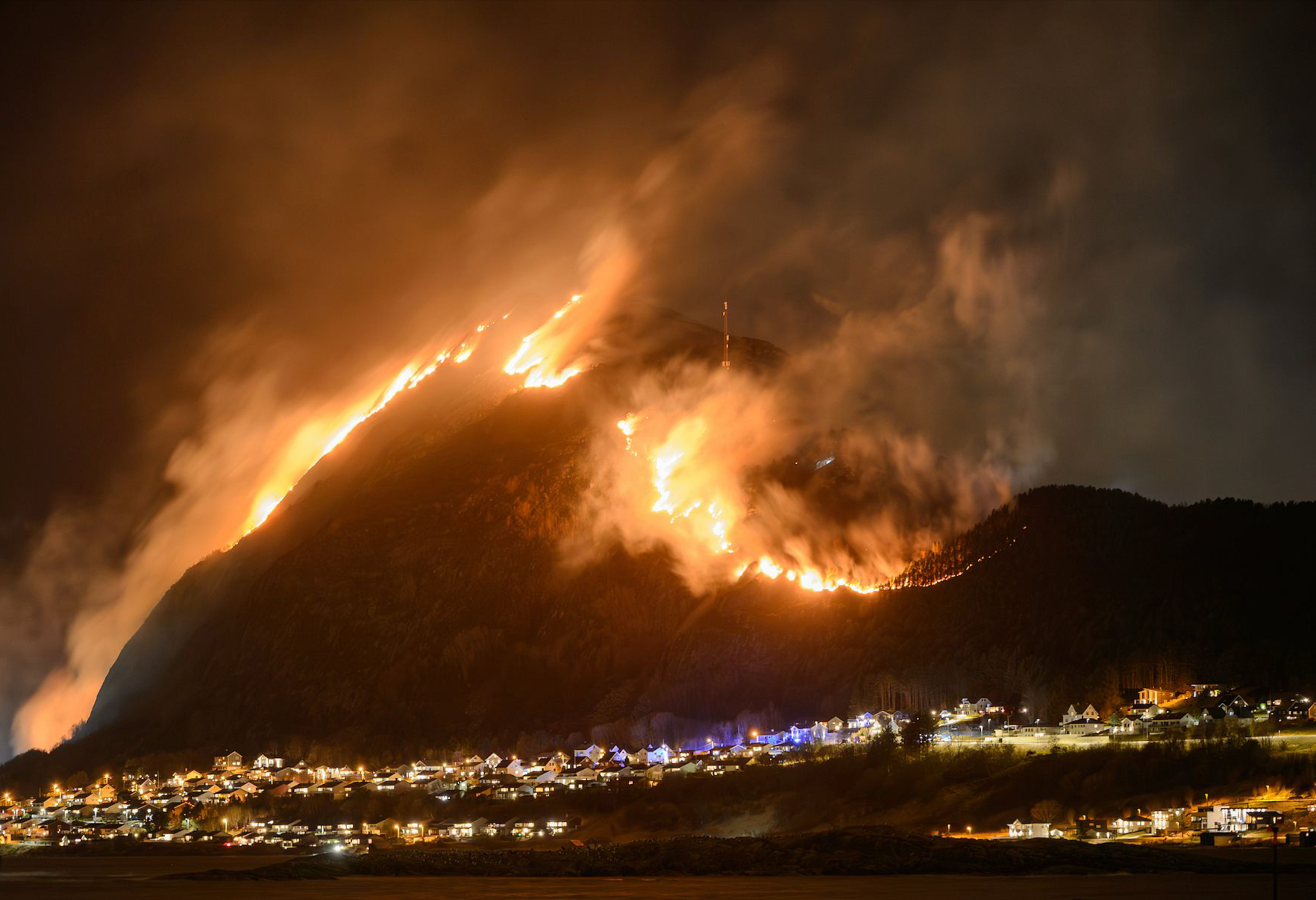 Vi er ikke utenfor fare ennå. Situasjonen er fortsatt kritisk. Vi har ikke kontroll, opplyste Sindre Egeness, brannsjef på Ålesund stasjon, under brannen.