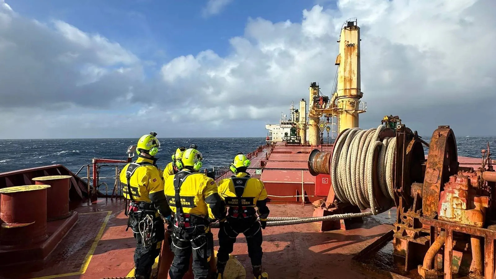 Brannmennene beskriver forholdene om bord som krevende, med skipet som krengte over 20 grader på det meste mens de ventet på slepebåt. Hovedmålet var å hindre at skipet skulle drive mot oljeinstallasjoner lørdag. RITS-personellet arbeidet for å etablere et slep til Kystvaktens fartøy KV Jarl, som midlertidig skulle holde skipet unna oljeinstallasjoner frem til rederiet selv kunne sette inn et slep. Det er første gang det offentlige gjennomfører et slikt nødslep.